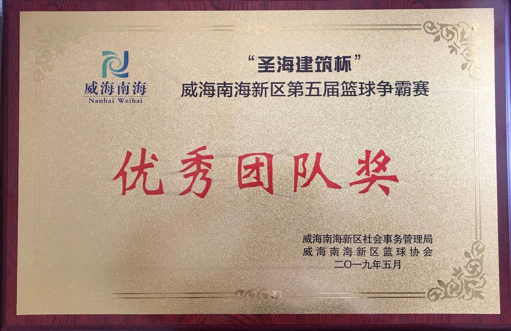 公司喜獲“圣海建筑杯”威海南海新區(qū)第五屆籃球爭霸賽優(yōu)秀團(tuán)隊(duì)獎(jiǎng)