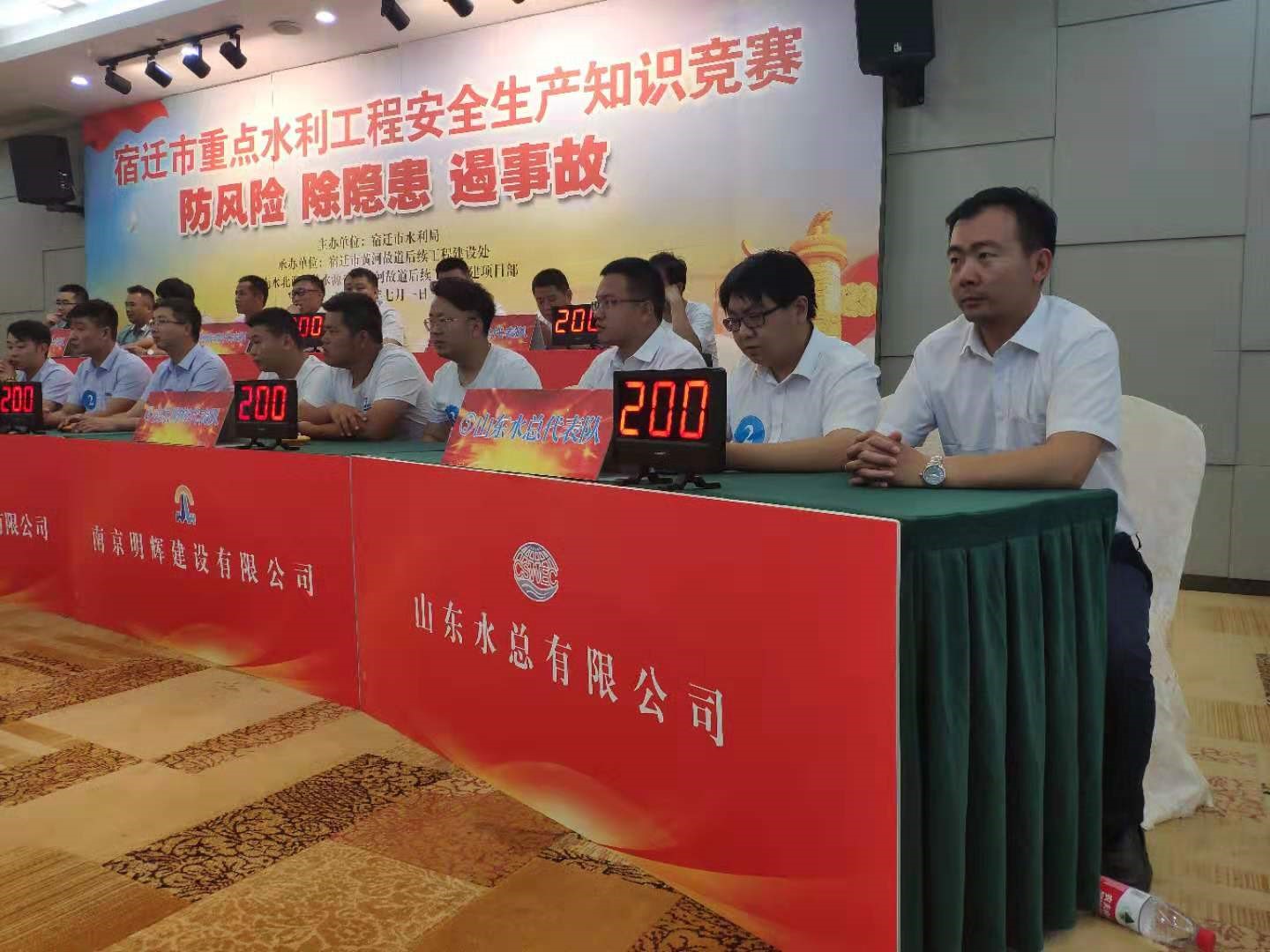 為深入推進安全生產(chǎn)月活動開展,普及安全生產(chǎn)法律知識,提高安全生產(chǎn)意識,筑牢安全生產(chǎn)防線,宿遷市水利局組織開展了“宿遷市重點水利工程安全生產(chǎn)知識競賽”活動。我公司宿遷市黃河故道后續(xù)工程施工3標項目經(jīng)理部派出代表隊經(jīng)海選、初賽、復賽多輪角逐,代表山東水總有限公司參加了總決賽,經(jīng)過激烈角逐,以優(yōu)異的成績榮獲第二名,展示了山東水總有限公司職工的良好風采。