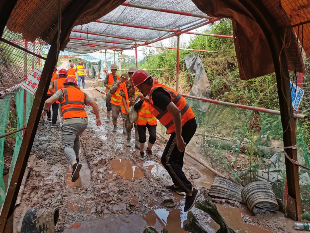 本次演練模擬大蒙子椏隧洞因雨水倒灌,導(dǎo)致掘進(jìn)機(jī)組受損,現(xiàn)場(chǎng)工人重傷1人、輕傷2人的一般事故,從觀察水情,到構(gòu)筑防水坎、啟動(dòng)應(yīng)急排水泵排水,模擬了防汛遇險(xiǎn)應(yīng)急處置的各項(xiàng)工作,各演練小組各司其責(zé)、分工協(xié)作、秩序井然,圓滿完成了演練任務(wù)。