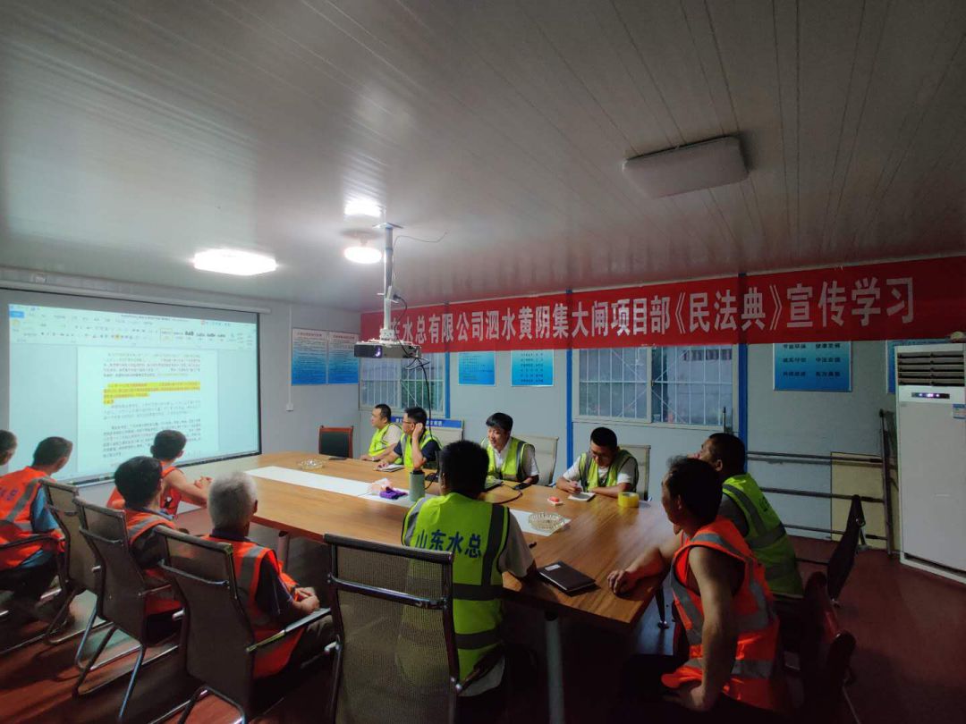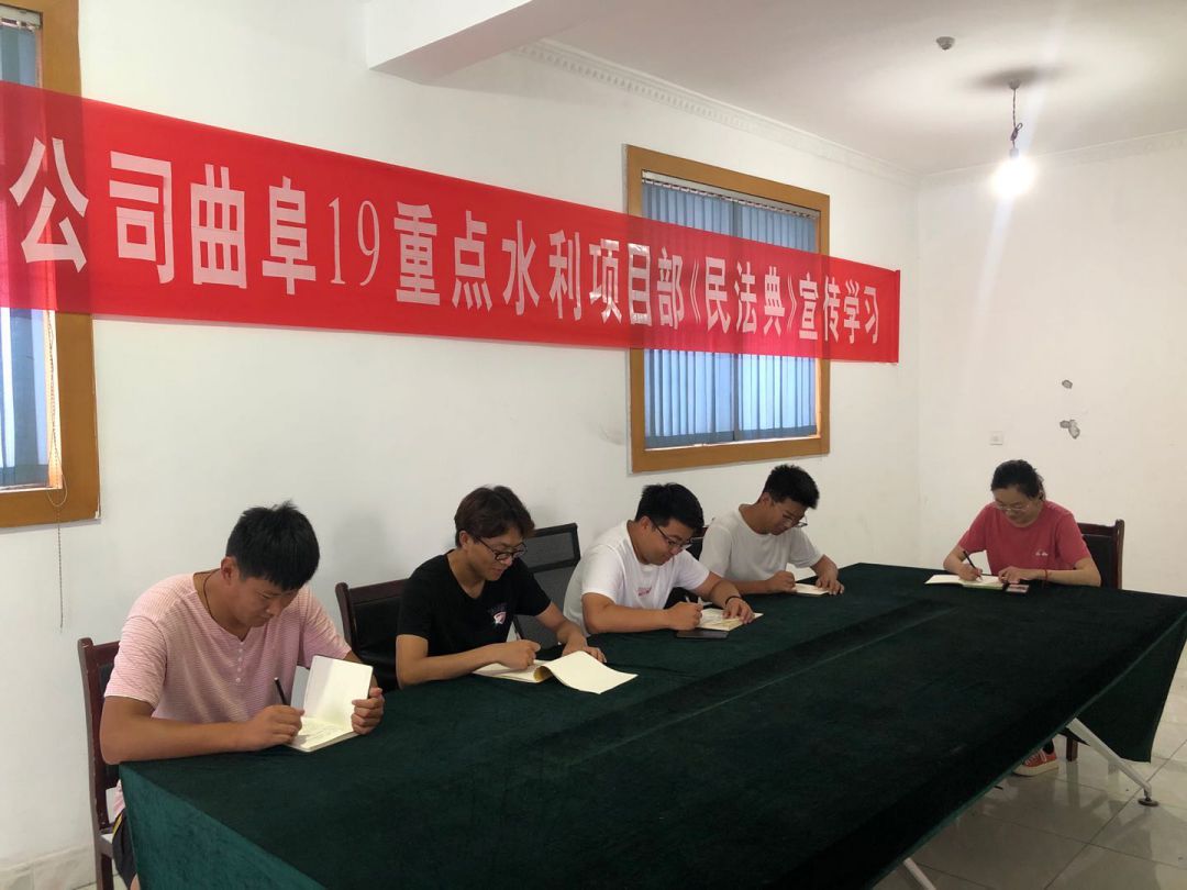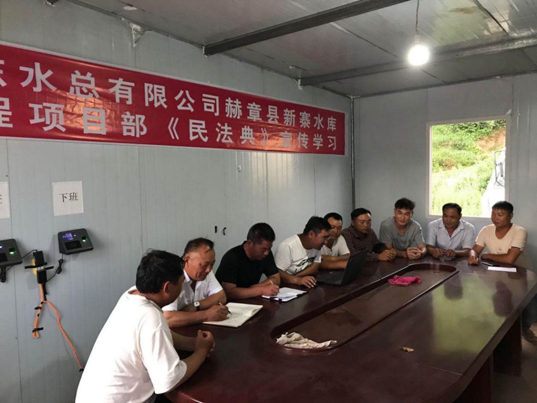 為響應(yīng)總公司法務(wù)與清收辦公室組織的“《民法典》宣傳月”活動(dòng), 7月23日晚上,泗水縣黃陰集大閘除險(xiǎn)加固工程項(xiàng)目經(jīng)理部在工地會(huì)議室召開《民法典》學(xué)習(xí)宣貫會(huì)議、2020年7月25日,赫章縣新寨水庫工程項(xiàng)目部全體成員在會(huì)議室進(jìn)行《民法典》宣傳學(xué)習(xí)、曲阜2019年重點(diǎn)水利建設(shè)項(xiàng)目施工 一標(biāo)段在2020年7月28日進(jìn)行《民法典》學(xué)習(xí)、平塘縣擦耳巖水庫工程項(xiàng)目2020年7月29日進(jìn)行《民法典》學(xué)習(xí)、宣貫情況匯報(bào)如下: