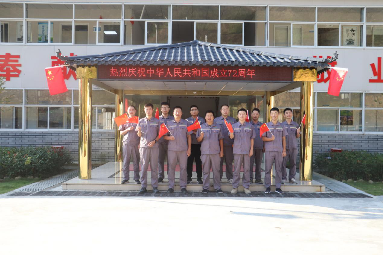 7點(diǎn)30分,國歌響起。駐項(xiàng)目全體員工,肅然而立,伴隨著雄壯激昂的國歌,向冉冉升起的五星紅旗行注目禮。仰視著五星紅旗飄揚(yáng)在旗桿頂端,大家共同吶喊:山東水總有限公司第六分公司祝祖國繁榮昌盛、國泰民安。