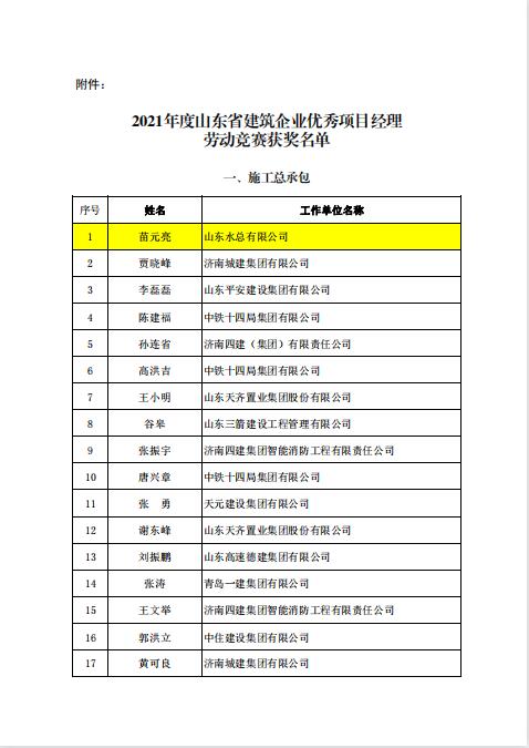 公司三名同志榮獲 2021年度“山東省建筑企業(yè)優(yōu)秀項(xiàng)目經(jīng)理”稱號