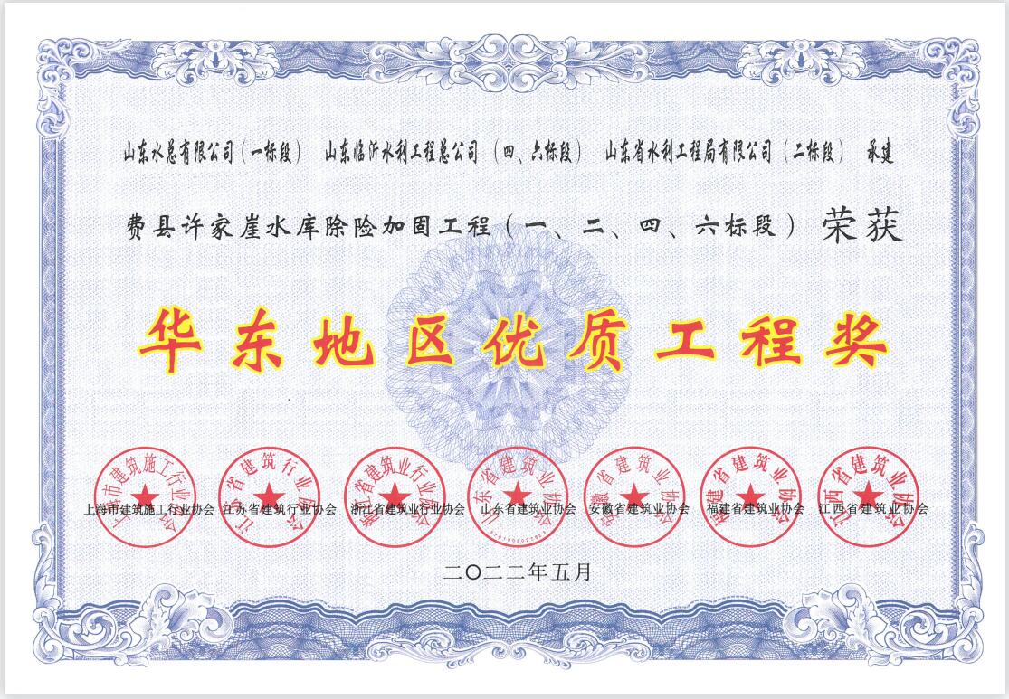近日,公司承建的費(fèi)縣許家崖水庫除險(xiǎn)加固工程榮獲2021年度“華東地區(qū)優(yōu)質(zhì)工程獎(jiǎng)”;泗水縣泗河黃陰集大閘除險(xiǎn)加固工程榮獲2020-2021年度“山東省優(yōu)質(zhì)結(jié)構(gòu)工程獎(jiǎng)”。榮獲這兩個(gè)獎(jiǎng)項(xiàng),是公司在省級質(zhì)量獎(jiǎng)項(xiàng)方面的又一次突破。在工程創(chuàng)優(yōu)上,公司始終堅(jiān)持以企業(yè)發(fā)展為核心,踐行“干一個(gè)工程,樹一塊豐碑”的質(zhì)量方針。