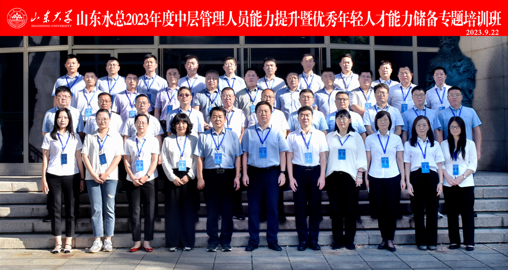 為進一步提升公司中層管理人員管理能力和優(yōu)秀年輕人才的綜合素質(zhì),打造高素質(zhì)專業(yè)干部隊伍,9月22日—23日,山東水總有限公司聯(lián)合山東大學在山東大學中心校區(qū)舉辦2023年度第一期中層管理人員能力提升暨優(yōu)秀年輕人才能力儲備專題培訓班。公司中層管理人員、優(yōu)秀年輕后備人才共50余人參加培訓。