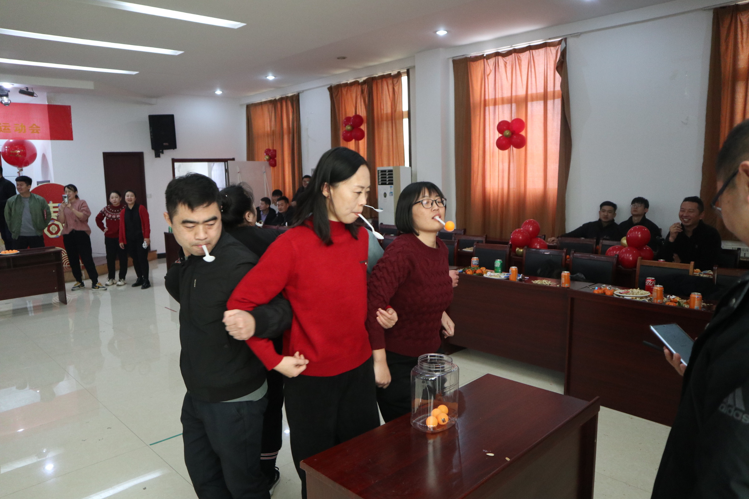 此次運動會集趣味性、協(xié)作性、競爭性于一體,包括同舟共濟、疊紙杯接力、勺子大作戰(zhàn)、雙龍戲珠、趣味保齡球、蒙眼擊鼓、袋鼠跳跳、夠級、摜蛋等多個項目。比賽現(xiàn)場既緊張激烈,又妙趣橫生,每項運動不僅考驗參賽選手的體力與動作協(xié)調(diào)性,更是參賽隊伍團結(jié)協(xié)作和智慧的完美比拼。賽場上,加油聲、吶喊聲此起彼伏,歡聲笑語不絕于耳。