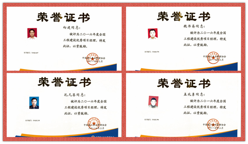 公司向建等四名同志被評(píng)為2016年度全國(guó)工程建設(shè)優(yōu)秀項(xiàng)目經(jīng)理