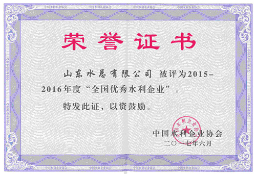 公司榮獲2015-2016年度“全國(guó)優(yōu)秀水利企業(yè)”