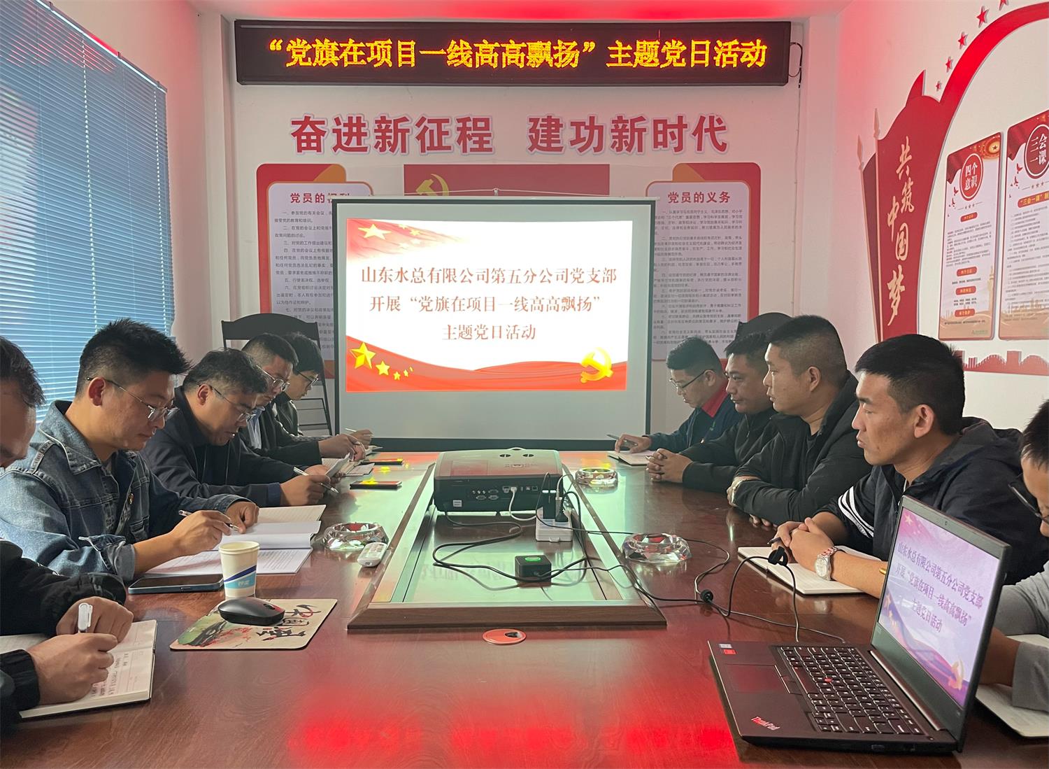 近日,第五分公司黨支部在資中縣兩河口水庫項目組織開展“黨旗在項目一線高高飄揚”主題黨日活動。