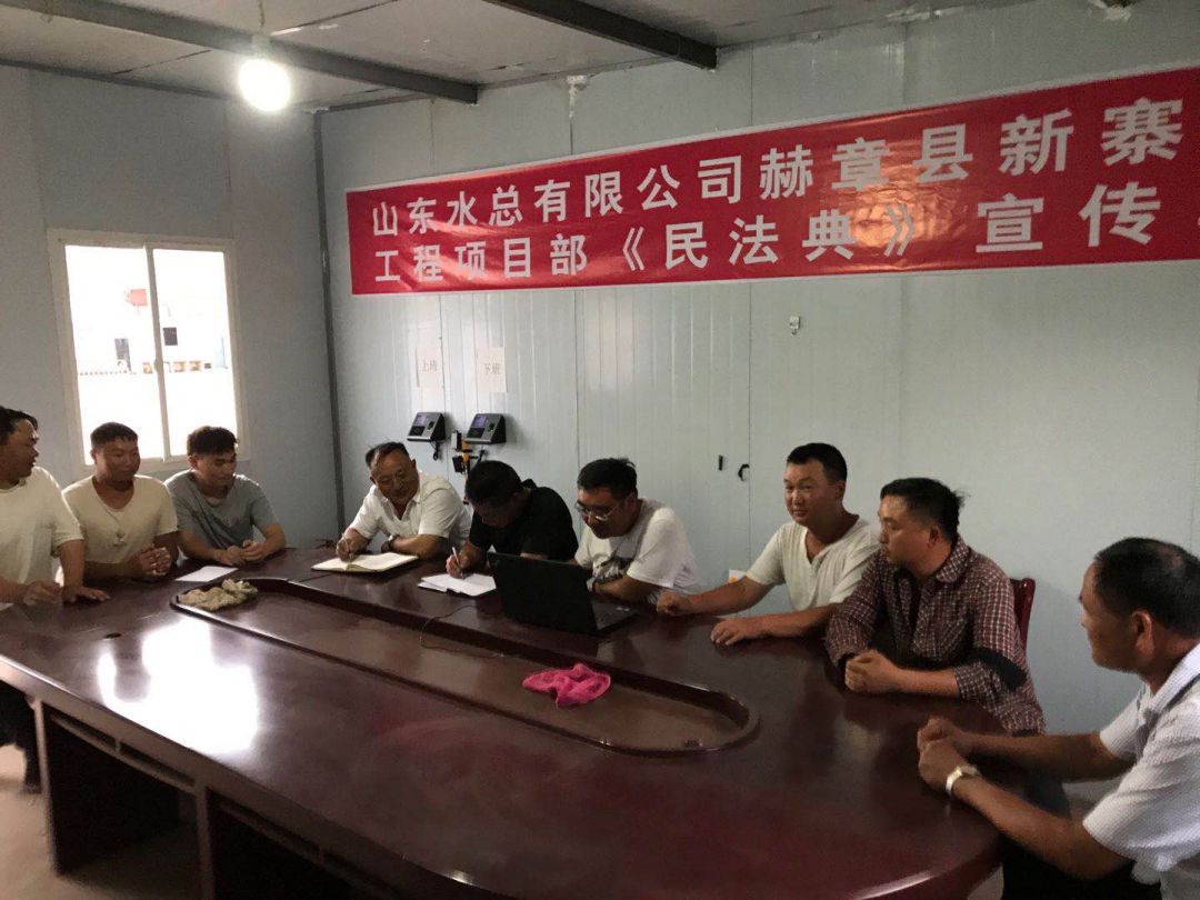 為響應(yīng)總公司法務(wù)與清收辦公室組織的“《民法典》宣傳月”活動(dòng), 7月23日晚上,泗水縣黃陰集大閘除險(xiǎn)加固工程項(xiàng)目經(jīng)理部在工地會(huì)議室召開《民法典》學(xué)習(xí)宣貫會(huì)議、2020年7月25日,赫章縣新寨水庫工程項(xiàng)目部全體成員在會(huì)議室進(jìn)行《民法典》宣傳學(xué)習(xí)、曲阜2019年重點(diǎn)水利建設(shè)項(xiàng)目施工 一標(biāo)段在2020年7月28日進(jìn)行《民法典》學(xué)習(xí)、平塘縣擦耳巖水庫工程項(xiàng)目2020年7月29日進(jìn)行《民法典》學(xué)習(xí)、宣貫情況匯報(bào)如下:
