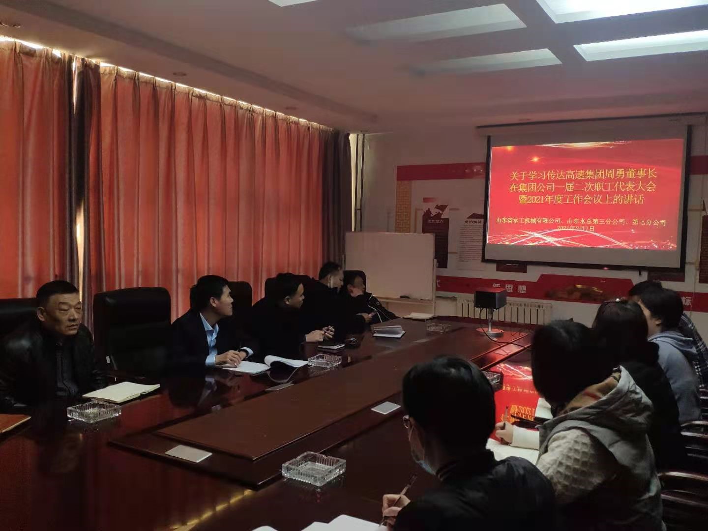 山東省水工機械有限公司、山東水總第三分公司、第七分公司傳達學習集團黨委書記、董事長周勇同志在2021年度工作會議上的講話