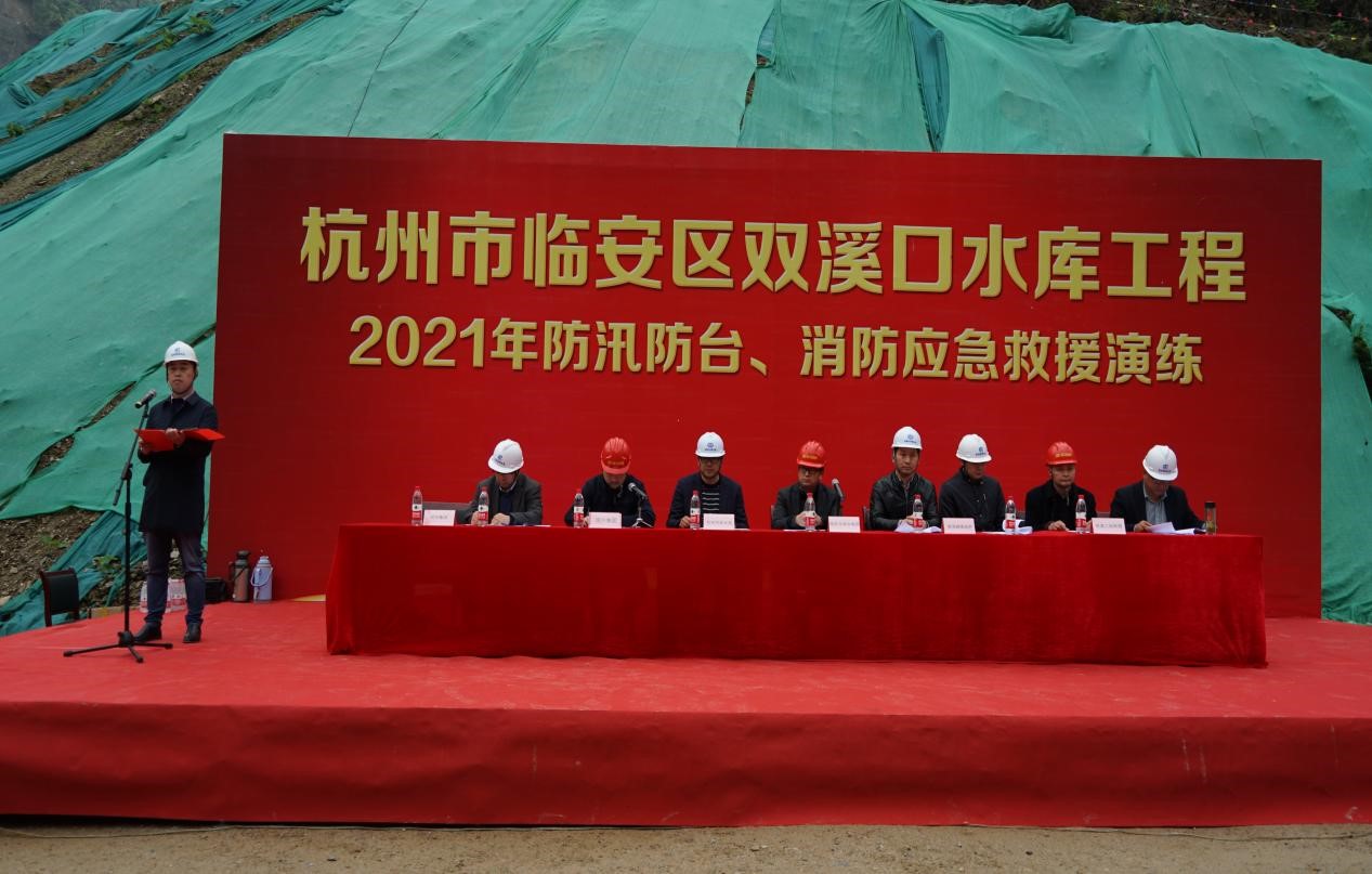 為進(jìn)一步增強(qiáng)杭州市臨安區(qū)雙溪口水庫工程參建人員防汛防臺(tái)和消防安全意識(shí),強(qiáng)化應(yīng)急預(yù)案保障措施落實(shí),提升參建各方應(yīng)對(duì)突發(fā)性洪水和火災(zāi)等事件的應(yīng)急能力,確保汛期施工人員生命財(cái)產(chǎn)安全。4月14日上午,在即將入汛之際,項(xiàng)目法人杭州魯潤水電開發(fā)有限公司組織各參建單位在雙溪口水庫工程現(xiàn)場開展了2021年防汛防臺(tái)和消防應(yīng)急救援演練活動(dòng),近70人參與現(xiàn)場演練。