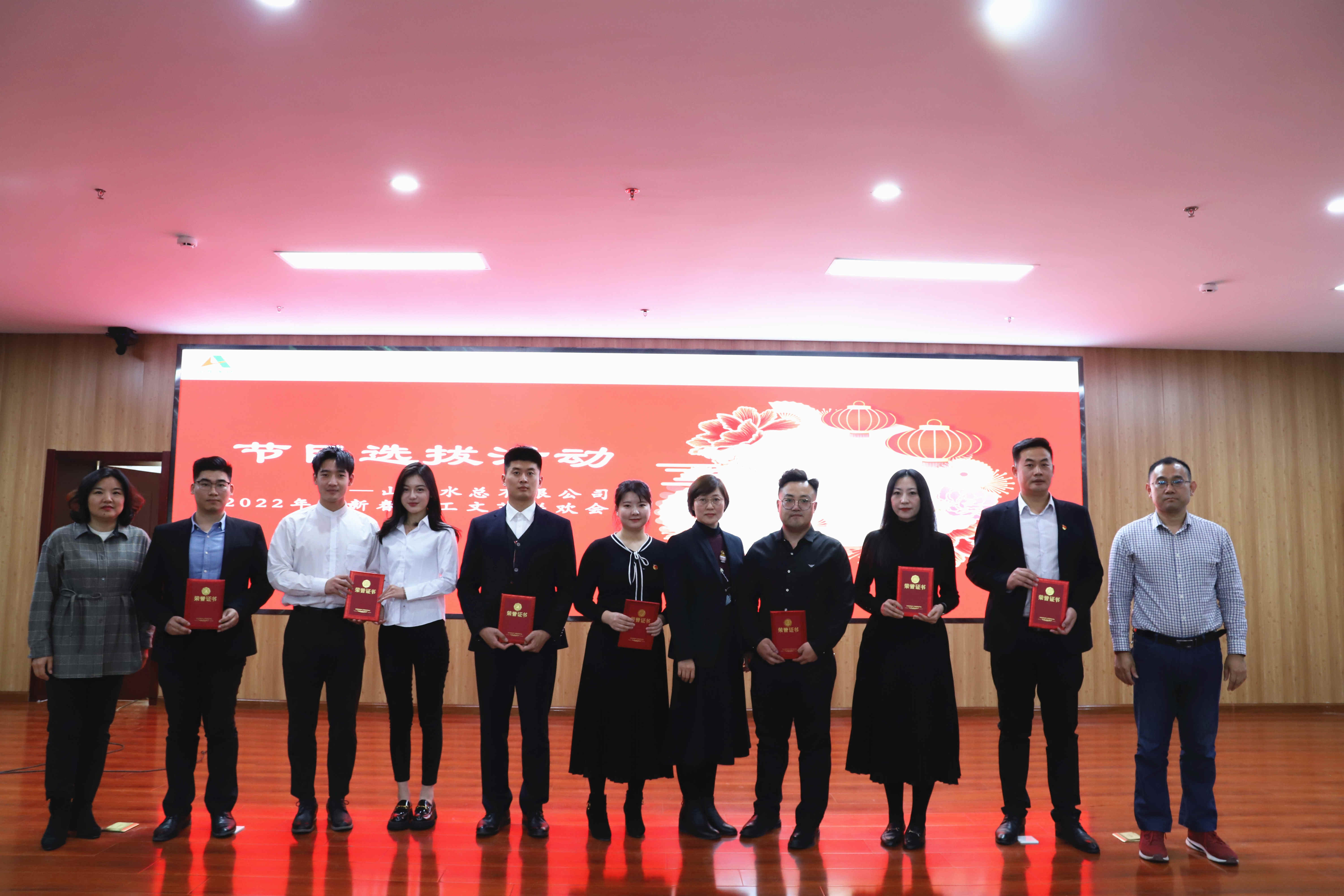 春風(fēng)傳喜訊,瑞虎踏歌來(lái)。山東水總2022年迎新春職工文藝聯(lián)歡會(huì)節(jié)目選拔賽活動(dòng)在《百年風(fēng)雨  砥礪奮進(jìn)》詩(shī)歌朗誦中拉開(kāi)帷幕,選拔活動(dòng)由歌曲、朗誦、樂(lè)器表演等15個(gè)節(jié)目組成,全方位展現(xiàn)了公司職工熱愛(ài)偉大祖國(guó)、追夢(mèng)偉大時(shí)代、奉獻(xiàn)偉大事業(yè)的精神風(fēng)貌,以實(shí)際行動(dòng)表達(dá)謳歌了國(guó)家發(fā)展的輝煌成就?,F(xiàn)場(chǎng)評(píng)委由公司領(lǐng)導(dǎo)、部室負(fù)責(zé)人代表及職工代表組成。