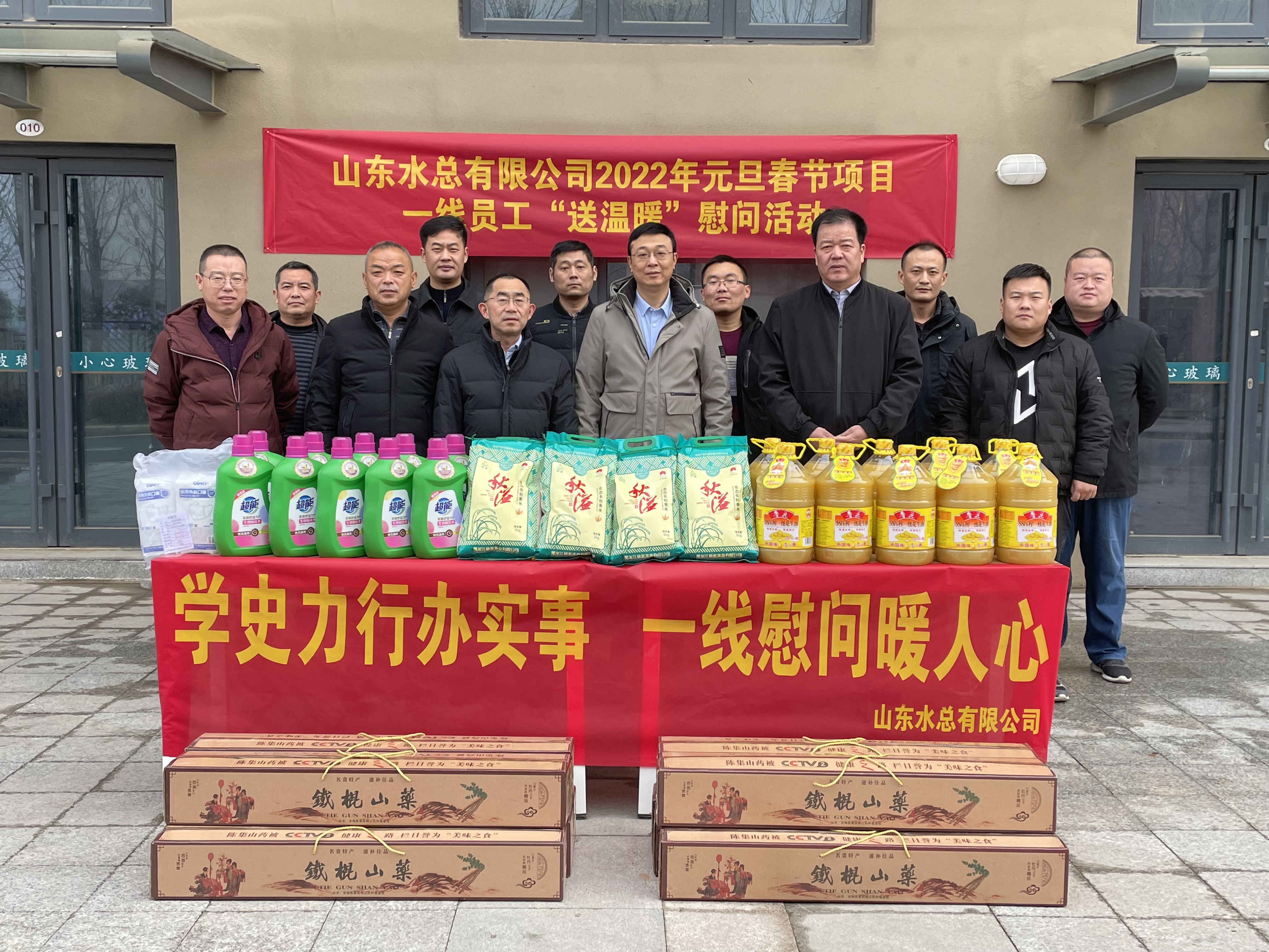 聲聲問候暖人心,句句祝福表關(guān)愛。 1月6日,山東水總有限公司黨委委員、副總經(jīng)理袁英杰、總會(huì)計(jì)師楊利軍及綜合辦公室主任張輝一行來到菏澤市職業(yè)教育園區(qū)項(xiàng)目建設(shè)工地現(xiàn)場,走訪慰問元旦期間堅(jiān)守崗位的一線職工,把水總黨委、工會(huì)的節(jié)日問候和新年祝福送到職工身邊。