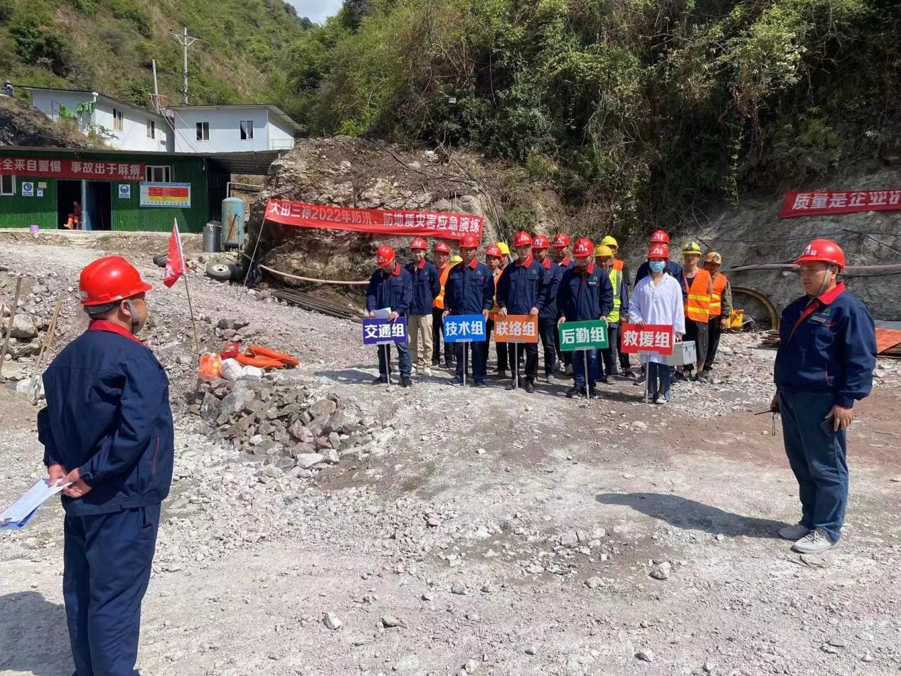 本次演練以廟基坪改線隧洞進(jìn)口工作面“突遇強(qiáng)降雨爆發(fā)山洪”為演練背景,按照應(yīng)急方案,先后通過信息報(bào)告及預(yù)警、應(yīng)急預(yù)案的啟動(dòng)、各救援小組緊急集合、現(xiàn)場(chǎng)人員的緊急疏散、施工現(xiàn)場(chǎng)的應(yīng)急搶險(xiǎn)、現(xiàn)場(chǎng)傷員救護(hù)等方面展開。