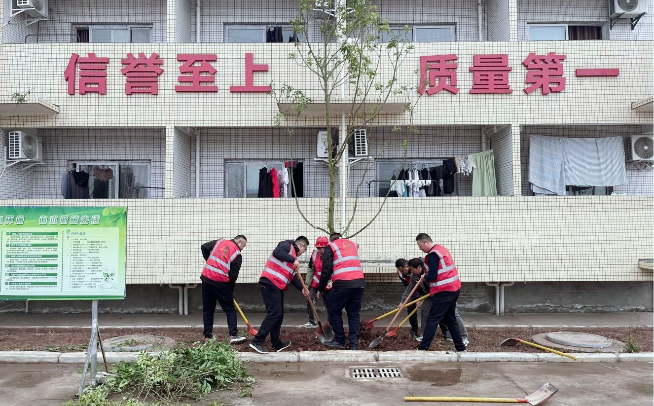 活動(dòng)現(xiàn)場(chǎng),項(xiàng)目部黨員充分發(fā)揮先鋒模范作用,身先士卒搬運(yùn)樹苗,團(tuán)員青年們也個(gè)個(gè)熱情高漲、干勁十足。大家分工明確,互相協(xié)作,一挖一鏟,一揮一種,精心栽培,用心澆灌,踐行了“綠水青山就是金山銀山”的理念,美化了項(xiàng)目駐地,營(yíng)造了綠色舒適的工作生活環(huán)境,展現(xiàn)了企業(yè)良好形象。