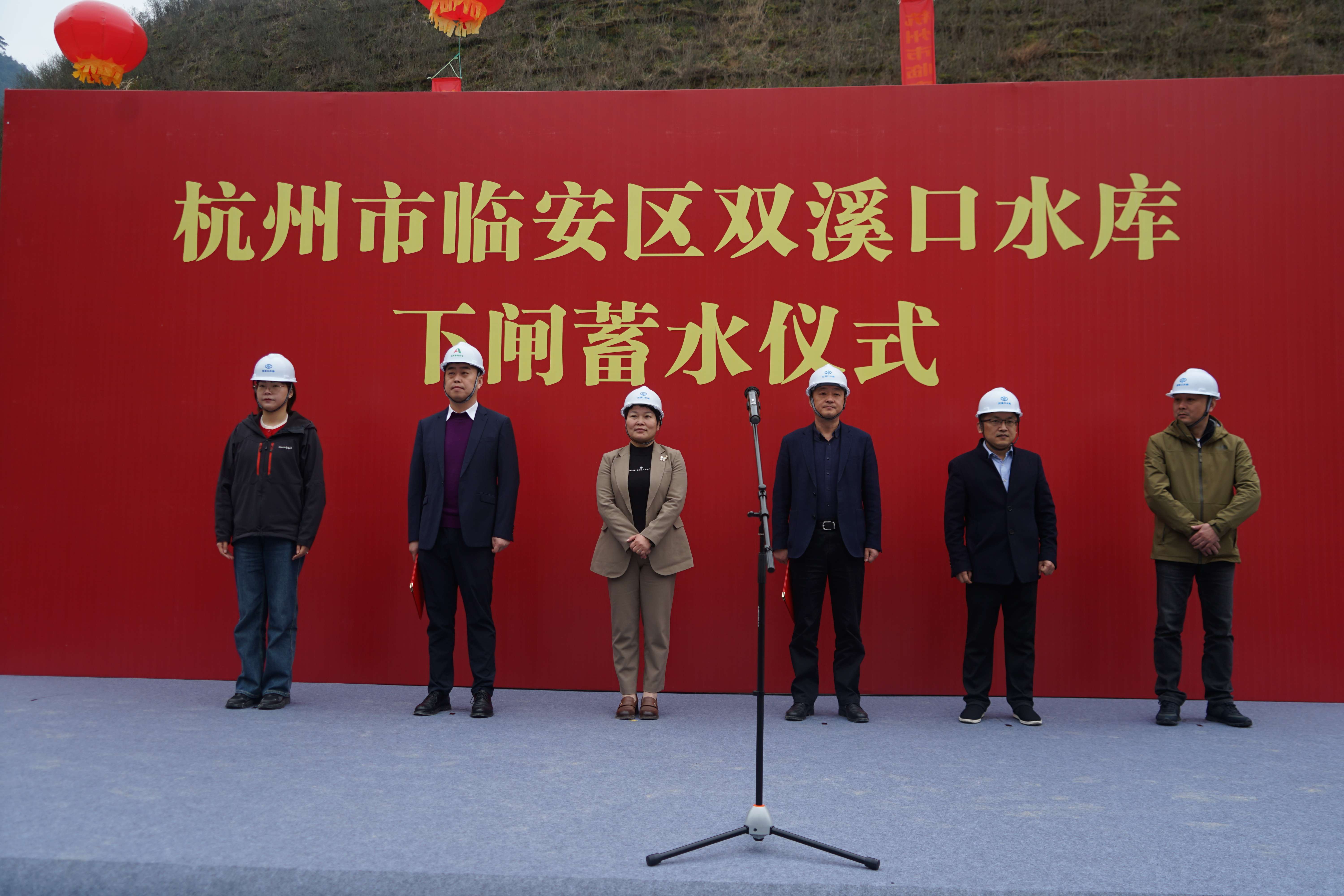 10時59分,下閘蓄水儀式正式開始。山東水總代表各參建單位發(fā)言,臨安區(qū)水利局代表PPP項目實施機(jī)構(gòu)發(fā)言,臨安區(qū)政府副區(qū)長羅愛芬宣布水庫下閘蓄水,伴隨著禮炮聲和掌聲,雙溪口水庫成功下閘,水緩緩蓄起。