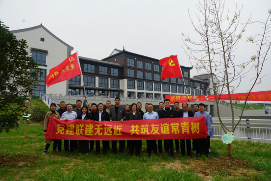在植樹(shù)現(xiàn)場(chǎng),各項(xiàng)目管理人員、一線人員互相配合,合力完成了紫薇、桂花、山玉蘭、垂絲海棠等樹(shù)種的種植。本次活動(dòng),雙溪口水庫(kù)臨時(shí)黨支部特意從水庫(kù)帶來(lái)了“臨安山泉”澆灌大家共同種植的樹(shù)木,澆灌了各方在黨建聯(lián)建中結(jié)成的深厚情誼。三位支部書(shū)記共同為“黨建聯(lián)建友誼林”揭牌,見(jiàn)證了聯(lián)建工作的新起點(diǎn)。活動(dòng)結(jié)束后,大家共同參觀了新陡門(mén)閘站,并赴石門(mén)水庫(kù)現(xiàn)場(chǎng)參觀交流水庫(kù)下閘蓄水等工作。