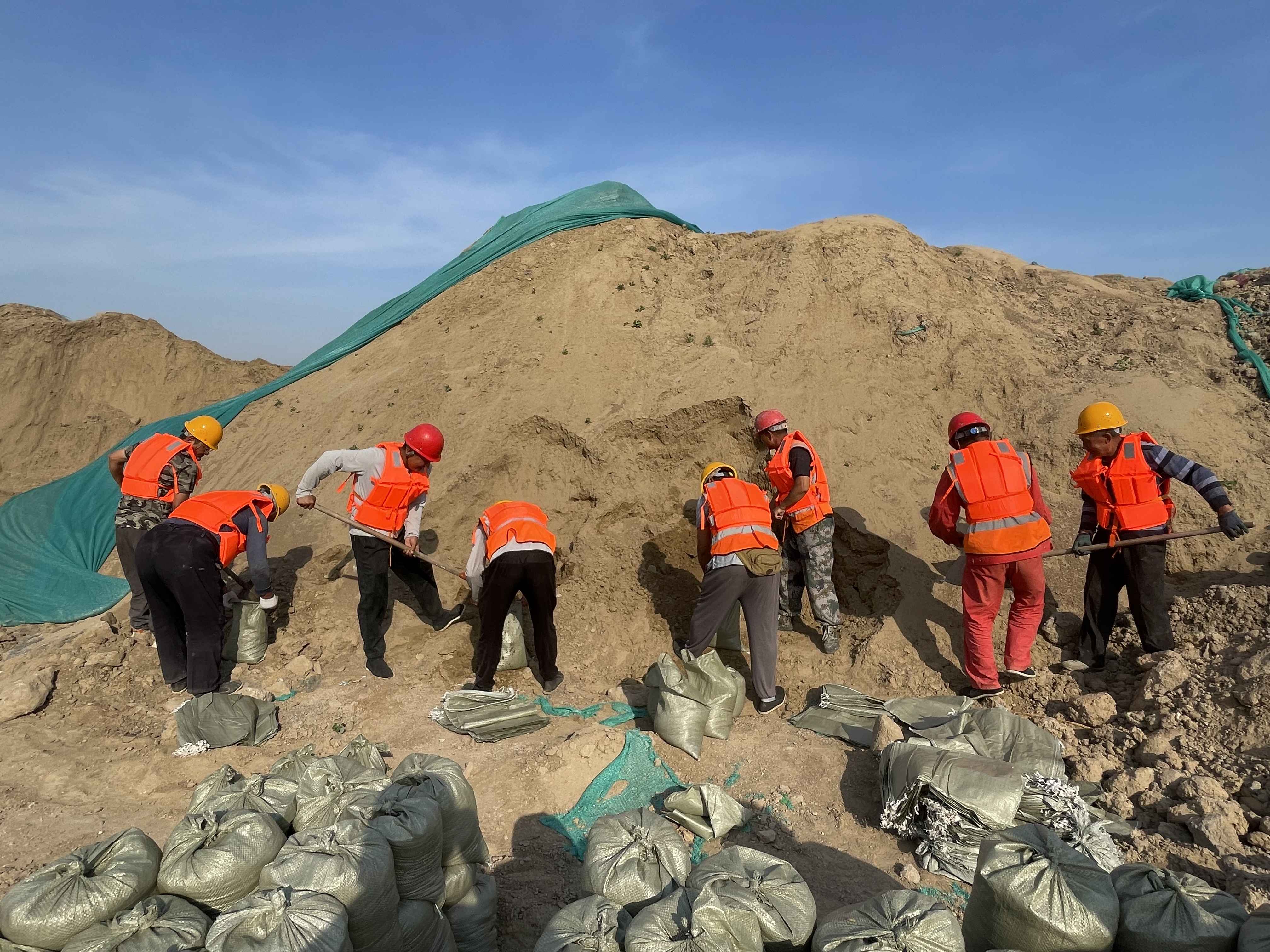 演練模擬了受連續(xù)強(qiáng)降雨強(qiáng)臺風(fēng)影響,施工區(qū)域堤防出現(xiàn)滲水、管涌、坍陷等險(xiǎn)情場景,分為滲水搶險(xiǎn)、管涌搶護(hù)、搶筑子堤共3個(gè)科目,設(shè)置了現(xiàn)場警戒組、應(yīng)急搶險(xiǎn)組、醫(yī)療救護(hù)組、后勤保障組、黨員先鋒隊(duì)等5個(gè)行動小組,共50余人參加。演練開始后,項(xiàng)目部立即啟動應(yīng)急響應(yīng),統(tǒng)一指揮調(diào)度搶險(xiǎn)救援工作,各小組成員按指令立即行動。整個(gè)演練過程有條不紊,現(xiàn)場人員反應(yīng)迅速,措施妥當(dāng)、處置有效,現(xiàn)場指揮和演練人員配合默契,圓滿地完成了演練任務(wù),達(dá)到了預(yù)期目標(biāo)和成效。
