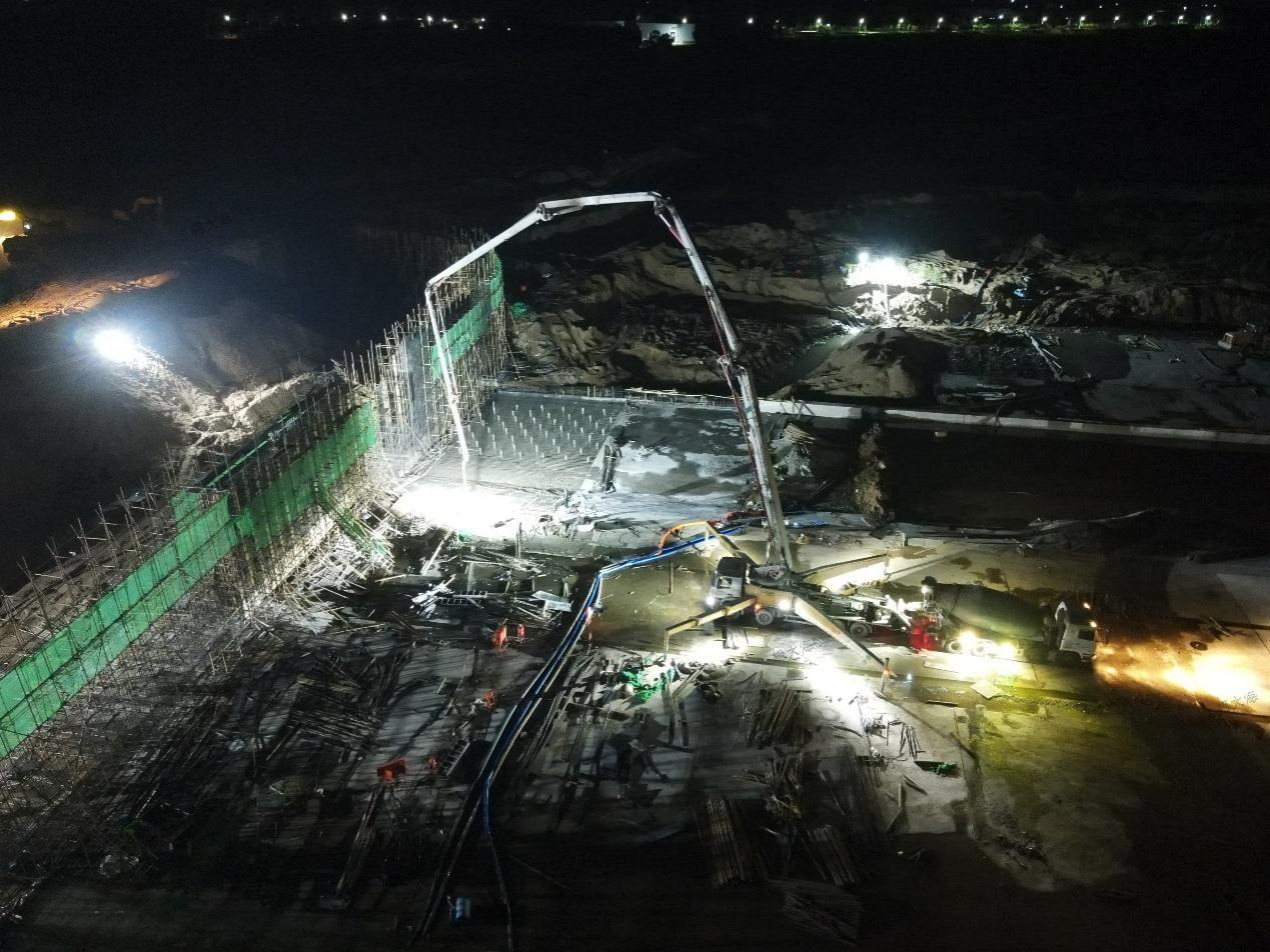 進(jìn)入汛期以來,第三分公司承建的沂南岸堤水源項(xiàng)目現(xiàn)場一片繁忙施工景象。白天搶抓晴好天氣,全力推進(jìn)工程建設(shè)進(jìn)度;夜間燈火通明加強(qiáng)巡查,確保施工質(zhì)量不受影響。目前,項(xiàng)目水下部位工程已全部完成,左岸消力池的澆筑也接近尾聲。