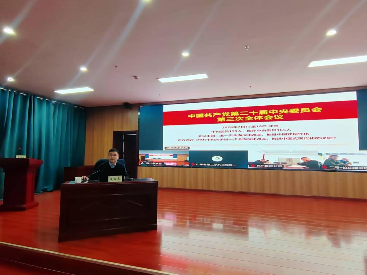 為深入學(xué)習(xí)貫徹落實黨的二十屆三中全會精神,按照山東高速集團黨委統(tǒng)一部署,11月18日,山東水總公司黨委組織舉辦了黨的二十屆三中全會精神學(xué)習(xí)班暨集中培訓(xùn),教育引導(dǎo)廣大黨員干部深入領(lǐng)會黨的二十屆三中全會的重大意義和豐富內(nèi)涵,切實把學(xué)習(xí)成效轉(zhuǎn)化為工作實效,推動習(xí)近平總書記重要指示要求、全會各項部署及上級黨委工作安排在公司落實落地。本次專題學(xué)習(xí)班為期三天,采取輔導(dǎo)報告講座、分組集中學(xué)習(xí)、交流研討等相結(jié)合方式。