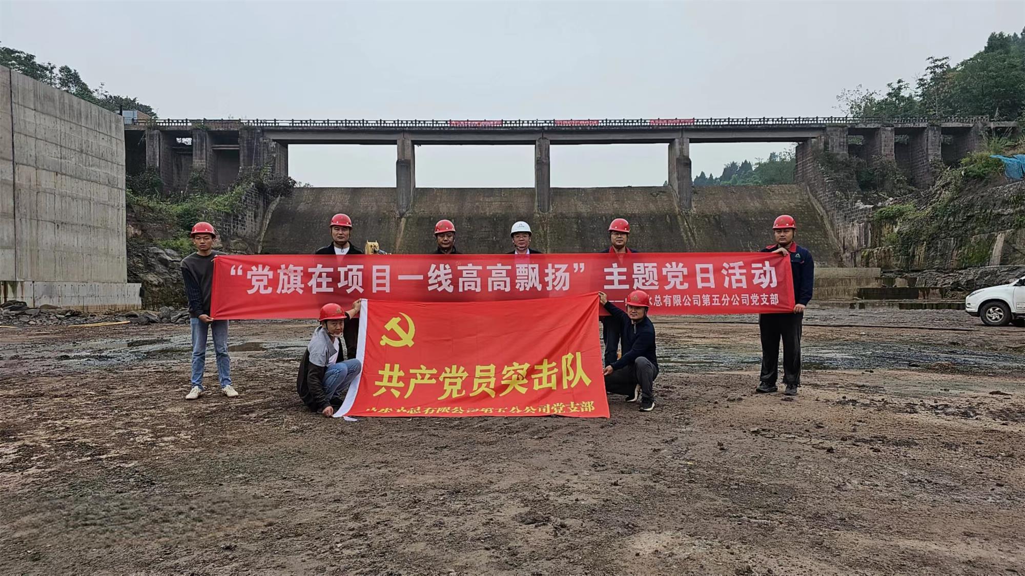 近日,第五分公司黨支部在資中縣兩河口水庫項目組織開展“黨旗在項目一線高高飄揚”主題黨日活動。