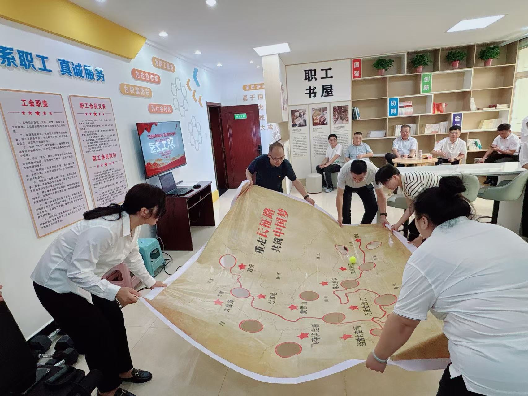 “踏尋長征印記,聚力闖關征途”環(huán)節(jié)以精心繪制的長征行軍路線圖為指引,帶領職工“重走”長征路。各小組爭分奪秒向“大會師”目標進發(fā),每通過一個關卡都仿佛觸摸到那段波瀾壯闊的歷史,在協(xié)作闖關的過程中,深刻感悟長征精神的偉大內涵。